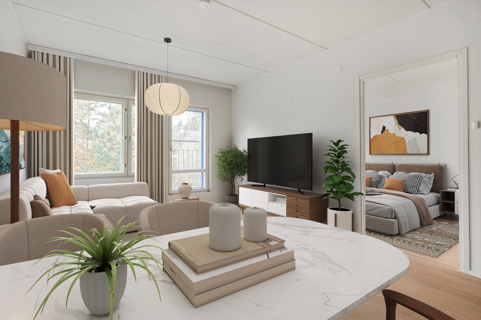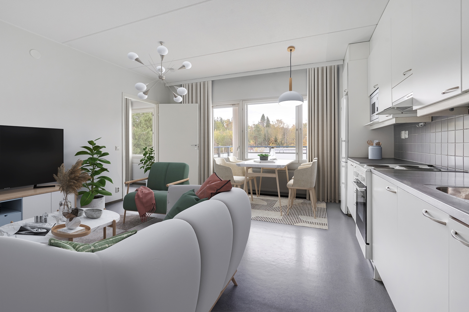 Asunnot ovat rakennusmääräysten mukaisesti esteettömiä. Esitetystä poiketen huoneistoissa voi olla materiaali- ja laitemuutoksia.