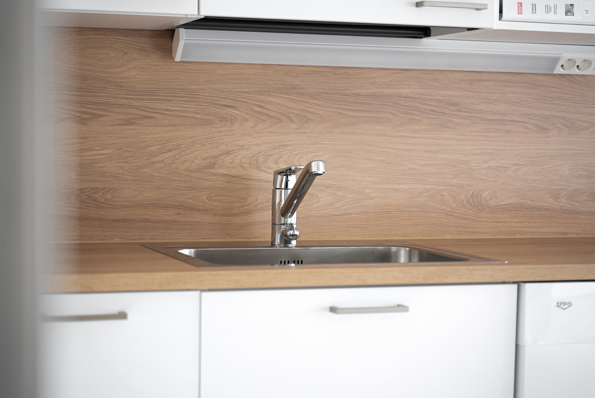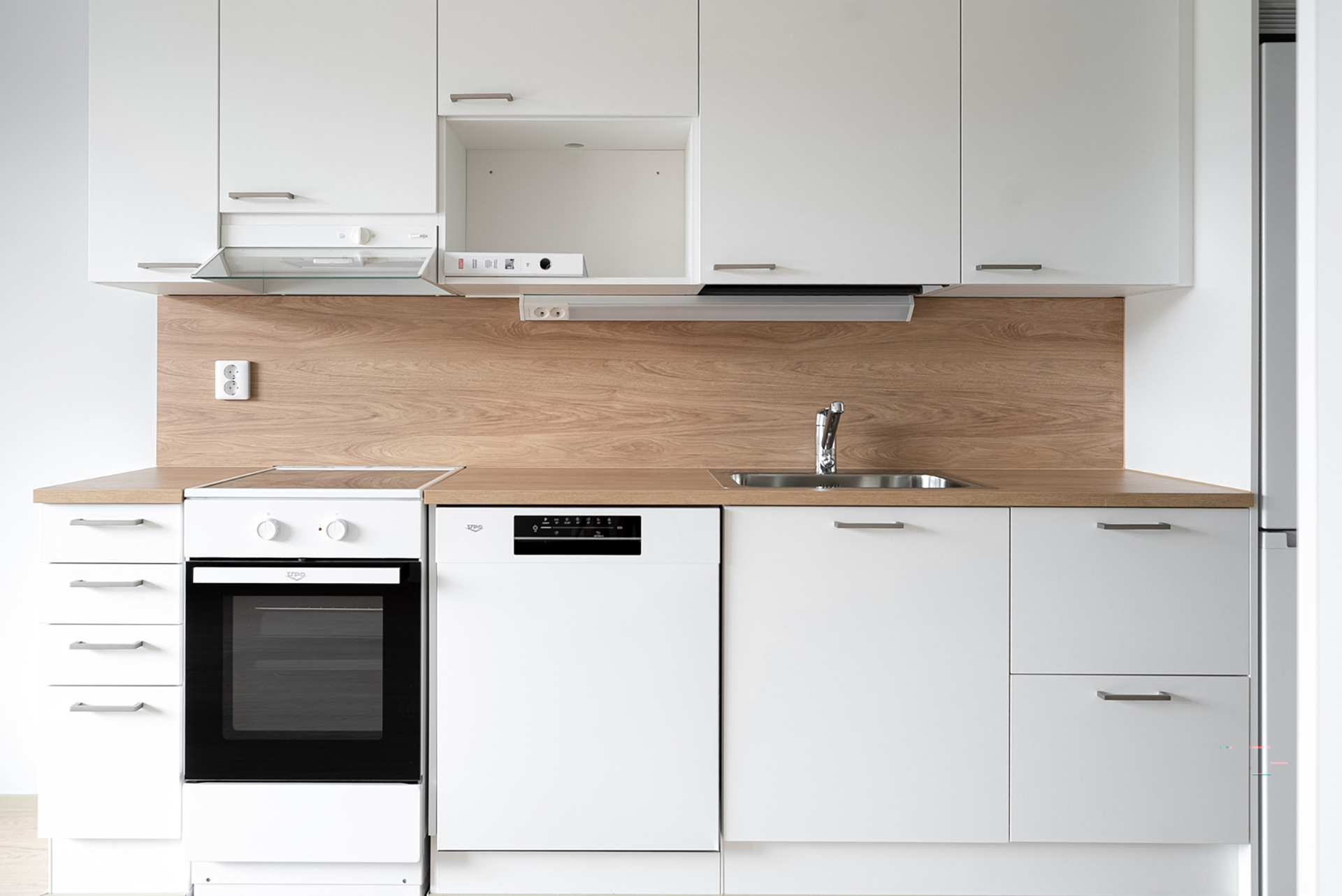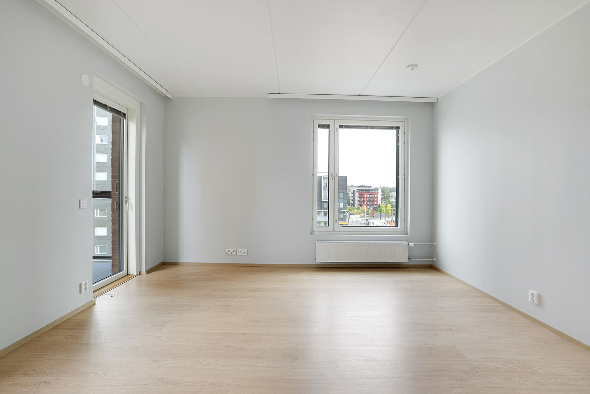The apartments have light oak -resistant laminate floors and light -painted walls. There is plenty of light flowing from the windows to the rooms. The bathrooms are tiled with stylish gray and white tiles.