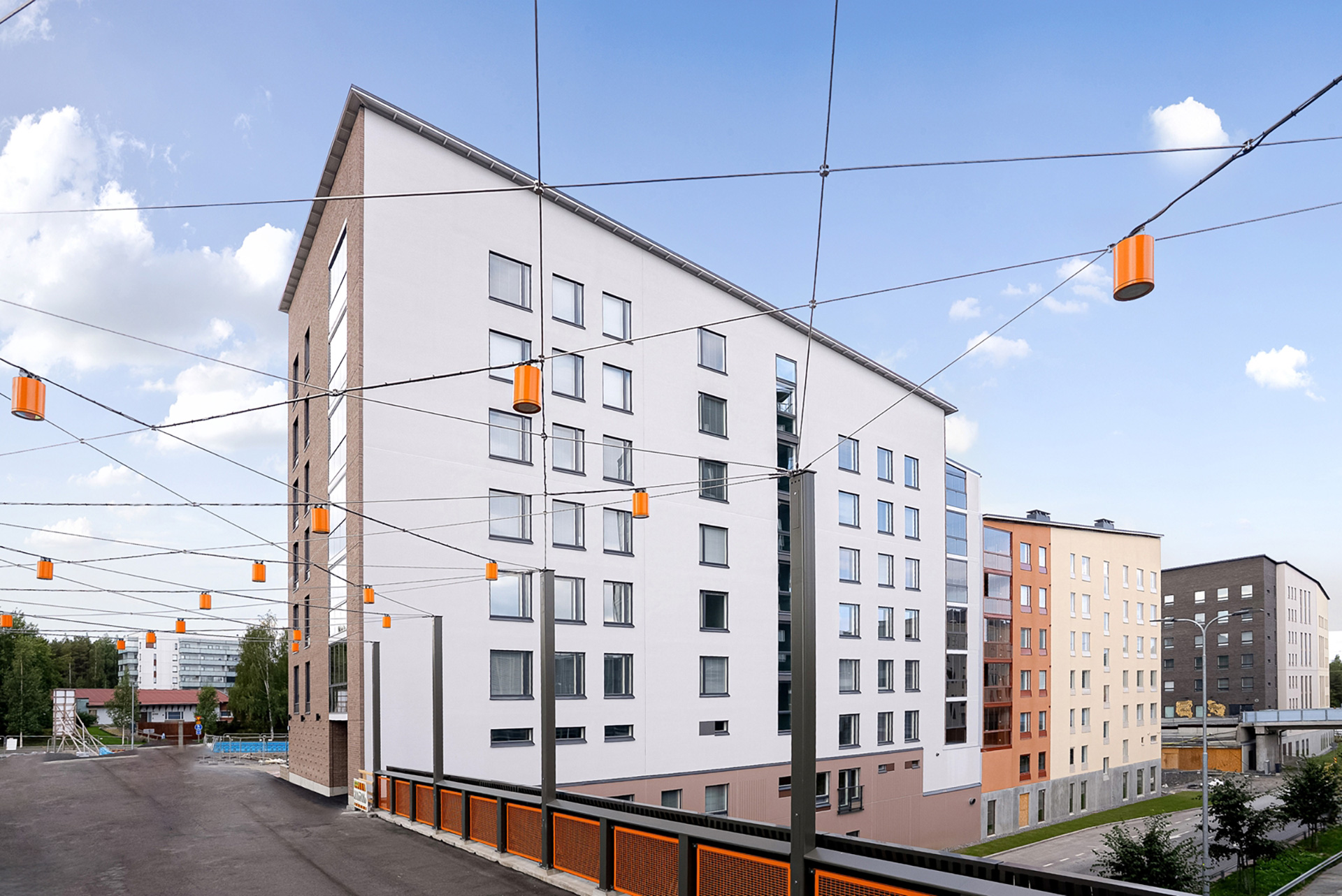The building and its courtyards are designed so that residents of different ages can meet each other naturally – if they so wish. The building has seven floors above ground, a basement and a parking garage on level -2, which is directly accessible from the residential building by elevator. The Hervanta residential area has good services, with a tram stop next door.