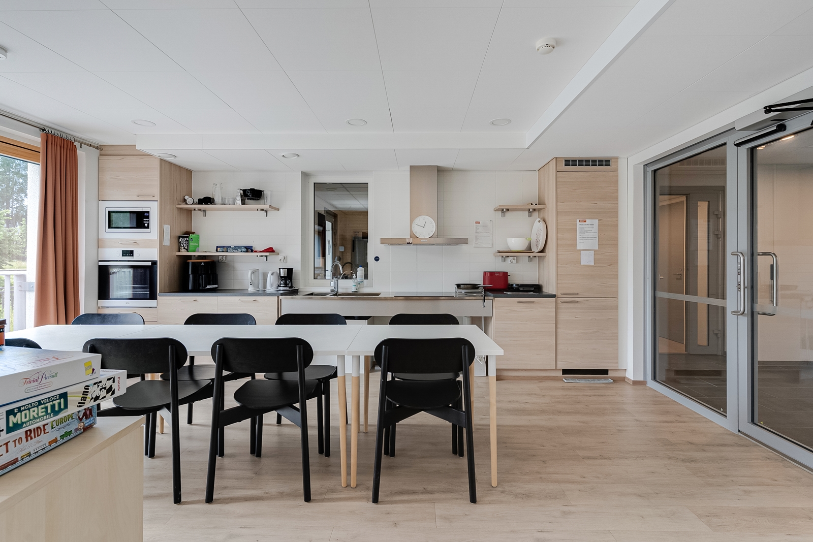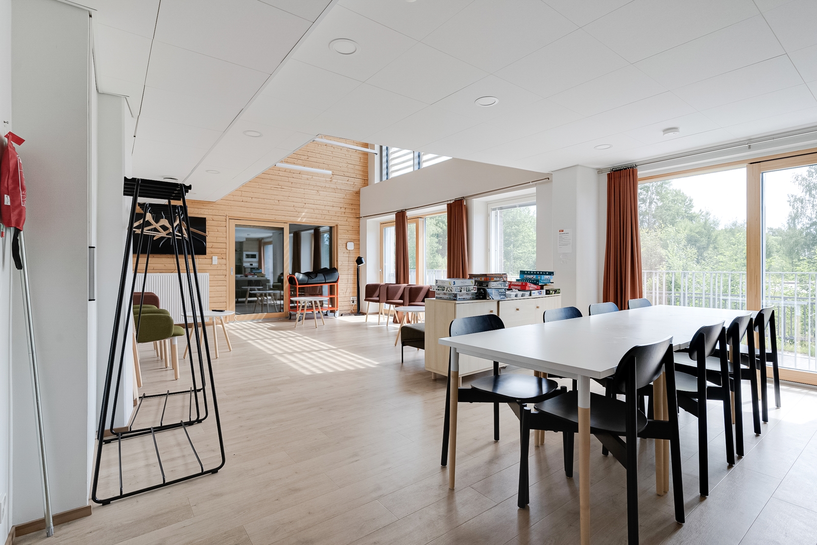 The common areas are mainly on the first floor of the building. In community space you can read a newspaper or drink coffee, meet neighbors, chat and spend time, watch TV or participate in other activities. In community space 's community kitchen you can cook and bake. community space also has a loft on the second floor and a co-working space for working and studying.
