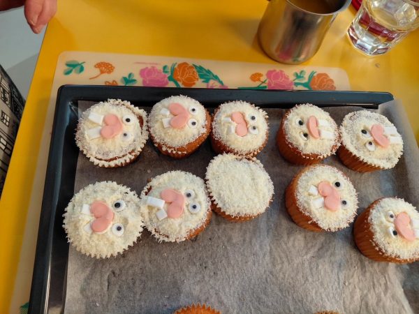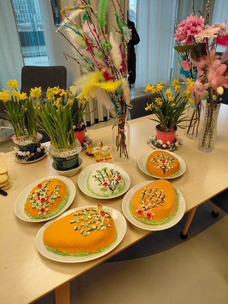 Helsingin Länsisatamankadun talolla pääsiäistunnelmaan on virittäydytty yhdessä leipoen. Asukastuvan keittiössä on syntynyt toinen toistaan herkullisempia leivoksia!